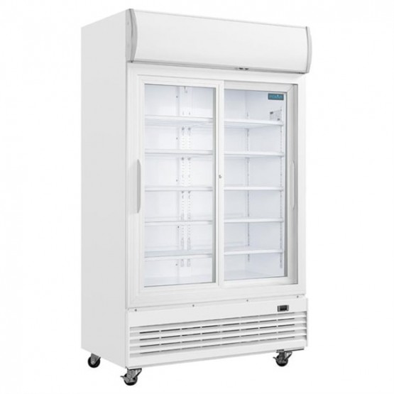 500W. White finish. R290 950ltr. The Polar G-Series double door display cooler is an fantastic choice for merchandising in farm shops, convenience stores and other similar food retailers.