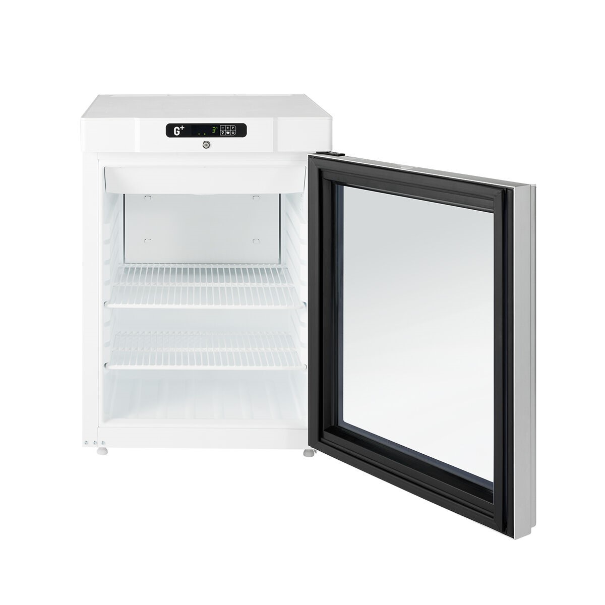 Features a glass door with integrated LED light and can be used as a display cabinet for quality products that require a stable temperature.