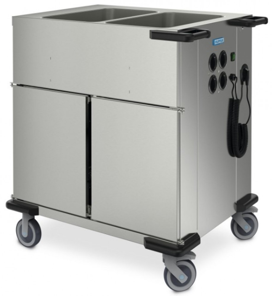 The Hupfer food transport trolley SPTW 2EBH 2WF features the use of foil heating elements in the well area, which significantly reduce the heating time while providing the same output, as well as reducing the heat emitted by the outer housing and thereby allowing considerable savings in energy costs in the long term.