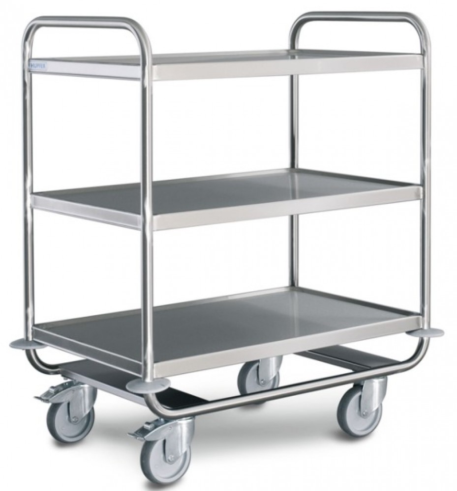 Trolley in robust, self-supporting and hygienic design, made of high-quality stainless steel.