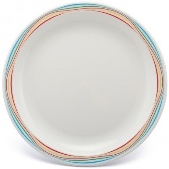 Harfield patterned Multi Coloured Swirls range 23cm plate 17cm plate 17cm bowl available white with stylish design on rim. Ideal for use in nurseries, schools and colleges suitable for outdoor activities such as barbecues.Attractively decorated virtually unbreakable polycarbonate tableware.