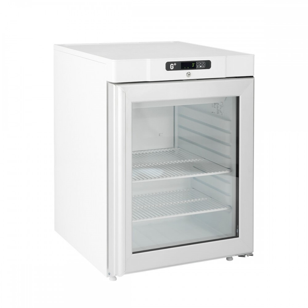 Features a glass door with integrated LED light and can be used as a display cabinet for quality products that require a stable temperature.