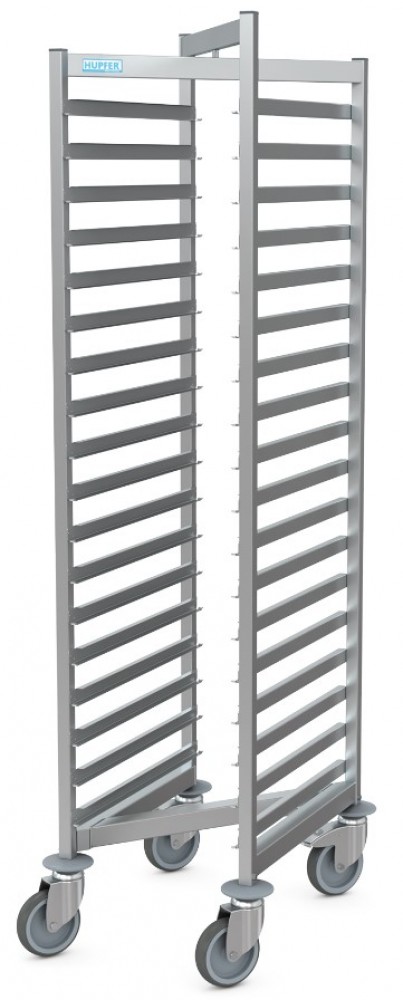 The Hupfer gastronorm trolley RWG / E 1 / 18 GN 75-L-U has a low empty weight and therefore provides outstanding handling properties, while its rail spacing of 75 mm gives it a 50% greater capacity (when GN containers without lids with a depth of 150 mm are placed in it).